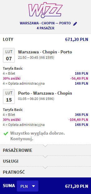 Warszawa – Porto – Warszawa za 168 PLN (rezerwacja dla 4 osób):