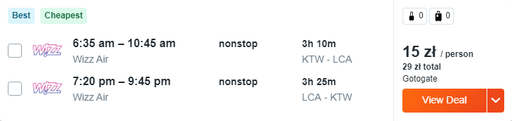 Do Larnaki polecicie w terminie 21–24 stycznia (piątek-poniedziałek). W tym okresie ferie zimowe mają mieszkańcy województw: kujawsko-pomorskiego, lubuskiego, małopolskiego, świętokrzyskiego, wielkopolskiego, podlaskiego i warmińsko-mazurskiego. Wasza podróż rozpocznie się na lotnisku w Katowicach, a loty będą realizowane na pokładach samolotów linii Wizz Air z wliczonym małym bagażem podręcznym.