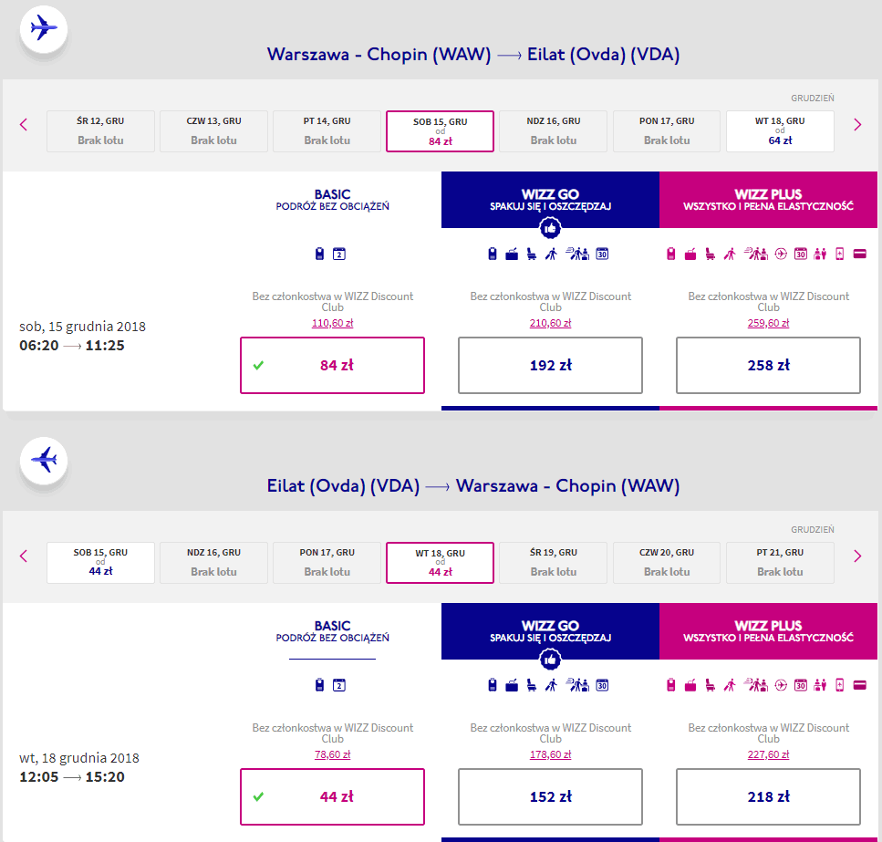 Przeloty realizowane są na pokładzie węgierskiej linii lotniczej Wizz Air. Aby uzyskać taką cenę, musisz być członkiem Wizz Discount Club.