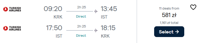 Na wycieczkę udasz się w terminie 6-9 grudnia (piątek-poniedziałek) z lotnisk w Krakowie lub Warszawie. Do Stambułu polecisz bezpośrednio linią Turkish Airlines. W cenę biletu został wliczony bagaż podręczny. Sprawdź wszystkie kierunki w wielkiej promocji Turkish Airlines.