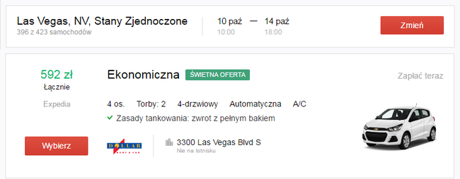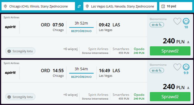 Spirit Airlines | Chicago 07:50 – Las Vegas 09:42 | 240 PLN | 10 października