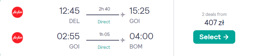 Do Indii udasz się w terminie 7(8)-19 marca. Podróżować będziesz bezpośrednio z Warszawy na pokładzie samolotów PLL LOT. Na miejscu czekają cię dwa loty wewnętrzne: 10 marca z Nowego Delhi do Goa oraz 15 marca do Mumbaju. W Azji skorzystasz z usług przewoźnika AirAsia. Pamiętaj też, że bez dodatkowych opłat możesz zabrać jedynie bagaż podręczny.