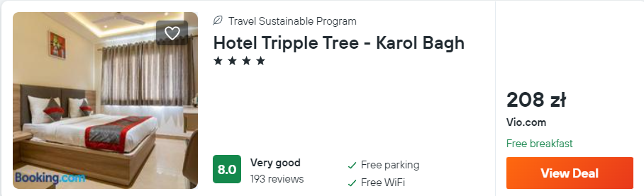 W Nowym Delhi postaw na 4* hotel Tripple Tree – Karol Bagh. Dotychczasowi goście bardzo dobrze oceniają pobyt w tym miejscu. W cenę noclegu zostało wliczone śniadanie.