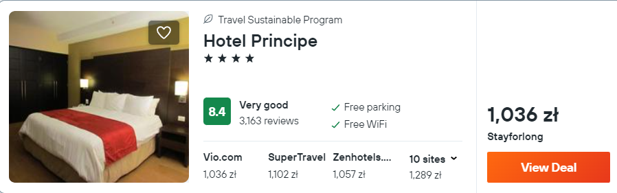 W stolicy zatrzymaj się w 4* hotelu Principe. Obiekt mieści się w centrum miasta i oferuje swoim gościom komfortowo urządzony pokój z prywatną łazienką.