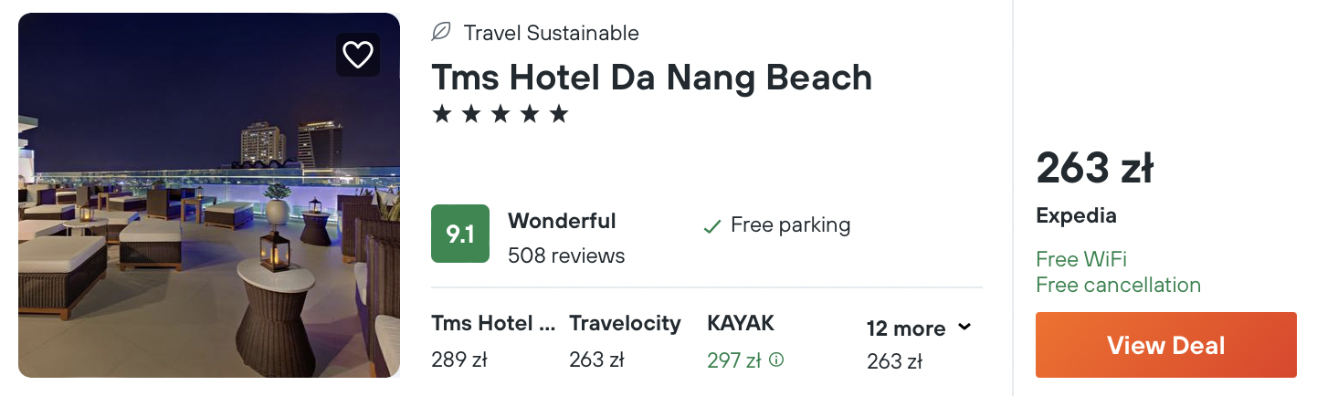 W Da Nang wybrałem dla was noclegi w 5* hotelu TMS, który usytuowany jest w pobliżu plaży. Z obiektu rozpościerają się malownicze widoki na okolicę.