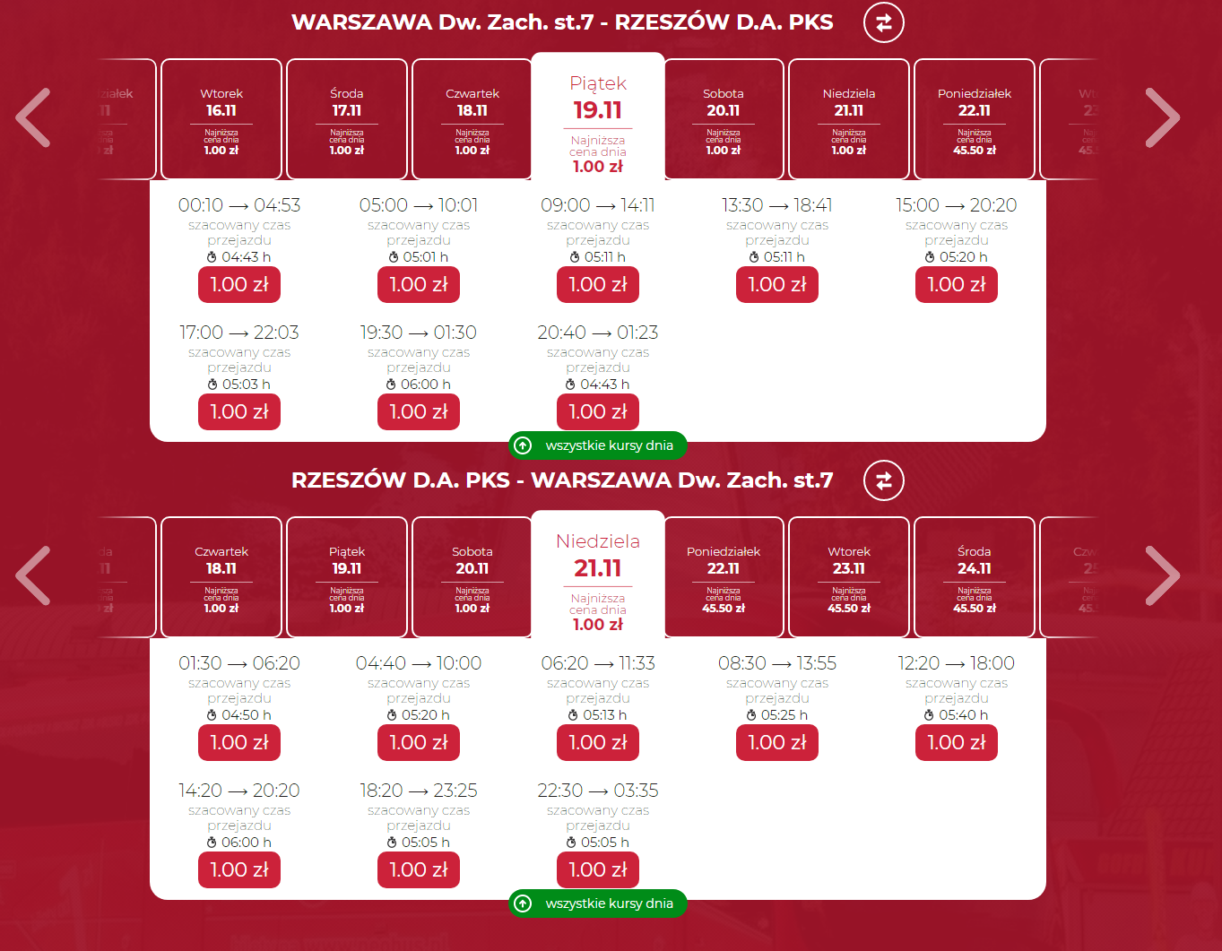 - N1 / Ustrzyki Górne – Ustrzyki Dolne – Sanok – Iwonicz-Zdrów – Rymanów-Zdrój – Krosno – Rzeszów – Ostrowiec Św. – Lotnisko Chopina – Warszawa