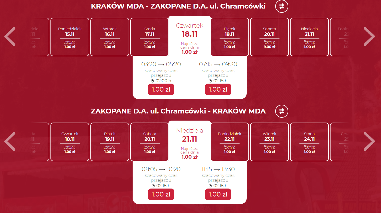 Tanie listopadowe autokarowe podróże z NEOBUS-em! Zakopane, Sanok, Warszawa, Rzeszów, Piotrków Trybunalski, Kraków, Kielce, Łódź, Gliwice, Katowice i wiele innych miast. Bilety od 1 PLN (+1 PLN opłaty za rezerwację).