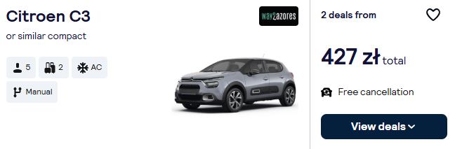 Wypożyczony samochód przyda się, by dojechać do wszystkich interesujących atrakcji, a następnie bez ograniczeń przemieszczać się po wyspie. Wynajmij go tuż po wylądowaniu na Azorach.