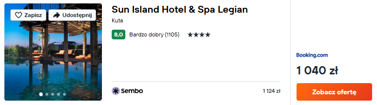 Na Bali proponuję zatrzymać się w 4* Sun Island Hotel & Spa Legian. To doskonałe połączenie komfortu, relaksu i świetnej bazy wypadowej.