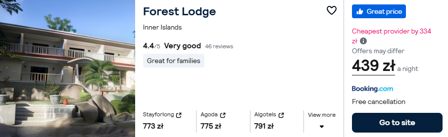 Przygodę rozpoczniesz na wyspie Mahe. Rozważ tam pobyt w bardzo dobrze ocenianym pensjonacie Forest Lodge.