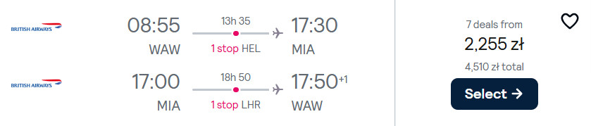27.3 Warszawa – Miami (przylot o 17:30)