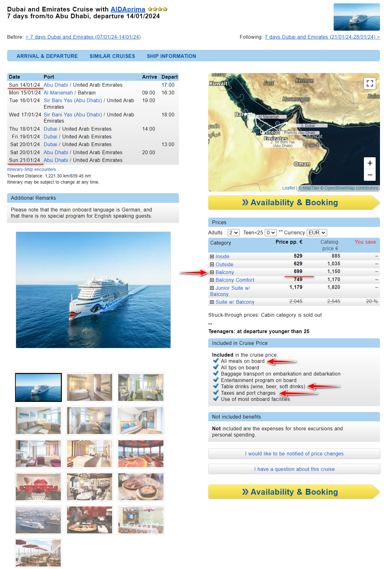 W cenę przygotowanego przeze mnie pakietu wliczony jest 7-dniowy rejs wycieczkowcem AIDAprima po Zatoce Perskiej. Statek wypływa i wraca do portu w Abu Zabi. Więcej informacji znajdziesz poniżej w tekście.