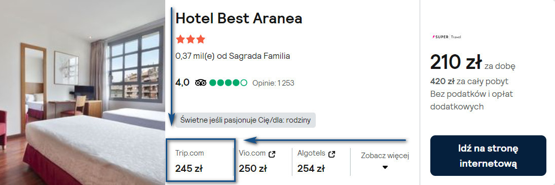 W stolicy Katalonii rekomenduję ci noclegi w 3* hotelu Best Aranea, który znajduje się w odległości 5 minut spacerem od kościoła Sagrada Familia. Wszystkie pokoje zostały wyposażone w klimatyzację oraz telewizor LCD. W łazience jest wanna z prysznicem i suszarka do włosów.