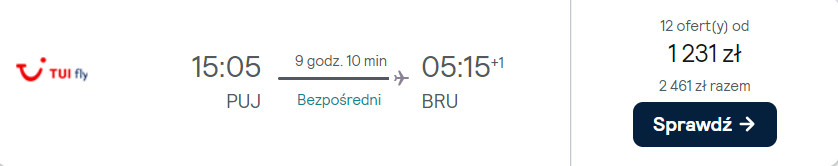 W drogę powrotną z Punta Cana udasz się 26 grudnia. Czekać cię będzie bezpośredni lot z Dominikany do Brukseli. Następnie polecisz ze stolicy Belgii do stolicy Polski. Przerwa pomiędzy lotami wynosi 10 godzin i 5 minut. Całą wycieczkę bez dodatkowych kosztów odbędziesz z małym bagażem podręcznym.