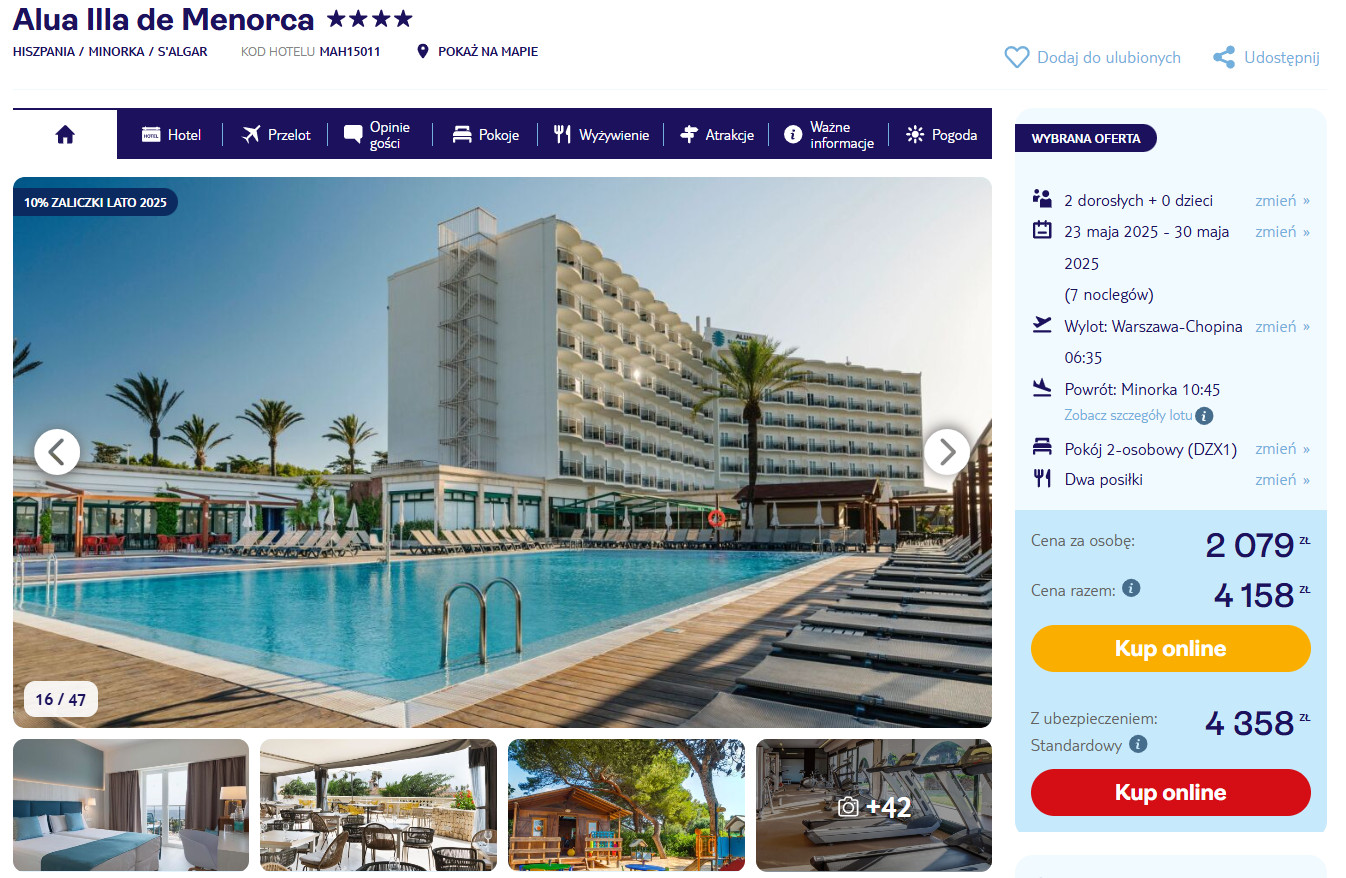 Na Minorkę polecisz z Warszawy terminie 23-30 maja. W obie strony podróżować będziesz samolotem PLL LOT z bagażem rejestrowanym (nadawanym do luku) oraz podręcznym.