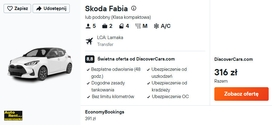 Samochód od 316 PLN/pobyt