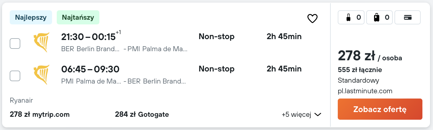 Do Hiszpanii udasz się w terminie 11-19 października. W obie strony polecisz bezpośrednio z Berlina na pokładzie samolotu linii Ryanair z wliczonym małym bagażem podręcznym.