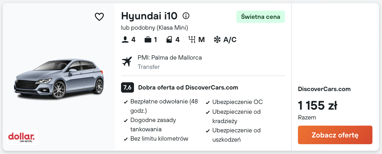 Aby zobaczyć wszystkie atrakcje na Majorce, wypożycz samochód już na lotnisku.