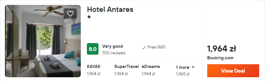Hotel 1964 PLN/2 osoby/6 nocy