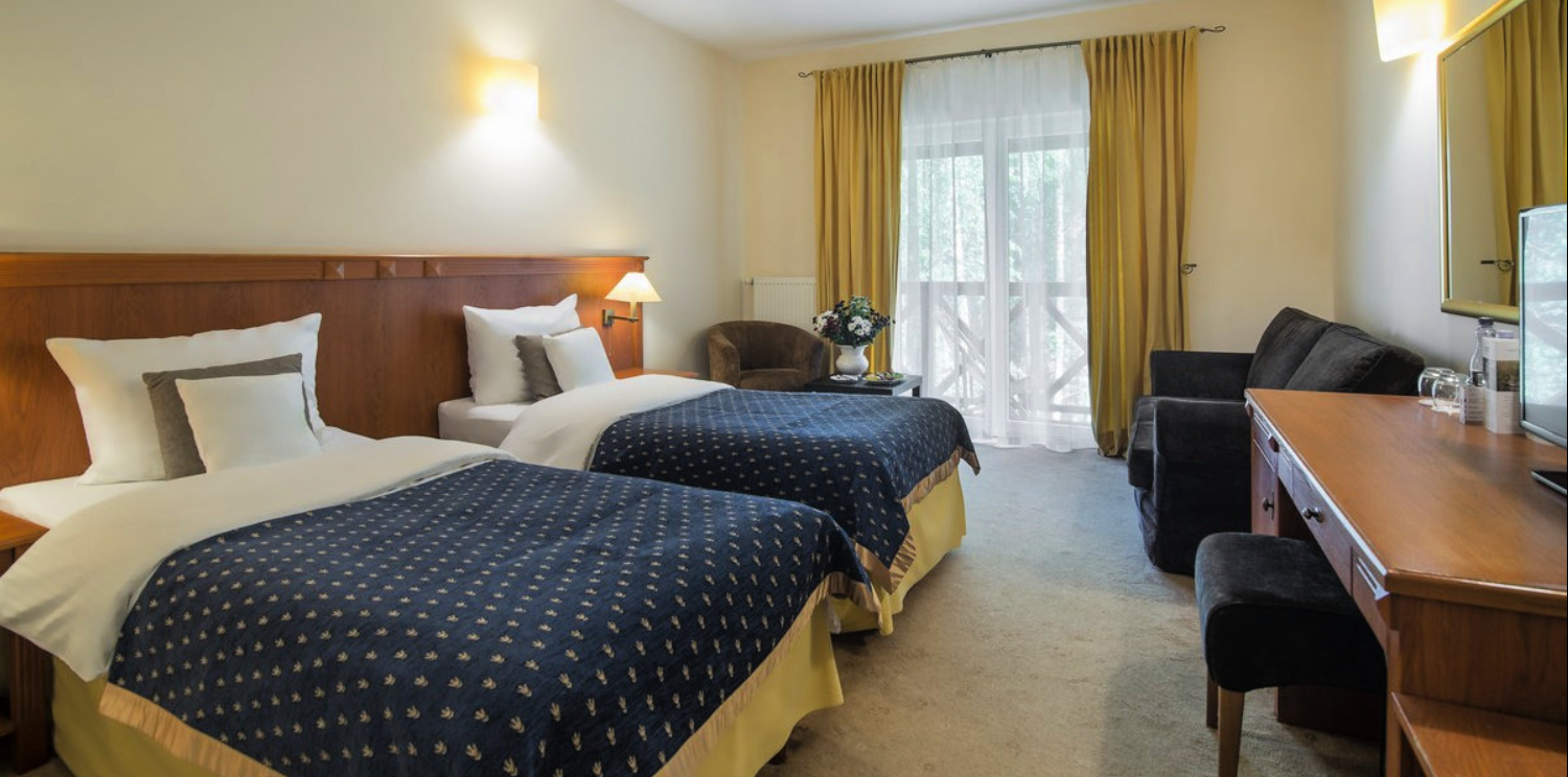 W cenie otrzymasz noclegi w komfortowym pokoju oraz niepełne wyżywienie: śniadania (serwowane w formie bufetu) oraz obiadokolacje. Ponadto w pakiecie dostaniesz również możliwość nielimitowanego korzystania z hotelowej strefy wellness: basenu dla dorosłych i dzieci, jacuzzi, sauny fińskiej, łaźni tureckiej oraz biczy wodnych. Leżaki oraz ręczniki basenowe w miarę dostępności. Na miejscu znajduje się bezpłatny parking, a na terenie całego obiektu będziesz mieć zapewniony dostęp do sieci WiFi.