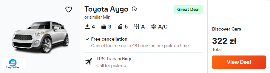 Do miejsca zakwaterowania oraz do malowniczych miasteczek: Castellammare del Golf oraz Cefalu, łatwo i wygodnie dojedziesz samochodem, które jest w liczone w cenę pakietu.