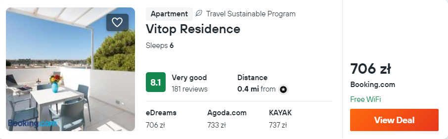 W San Vito Lo Capo zatrzymasz się w kompleksie apartamentów Vitop Residence, który od słynnej plaży oddalony jest o 500 metrów. Z lotniska w Trapani do miejsca zakwaterowania dojedziesz samochodem, którego wynajem wliczyłem w cenę całego pakietu.