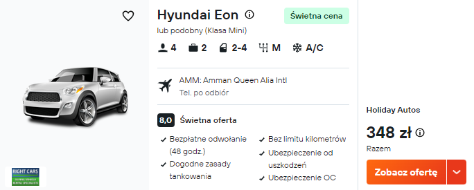 Wypożyczony samochód pozwoli szybko dostać się do hotelu, a następnie swobodnie, na własną rękę odkrywać atrakcje w Jordanii.