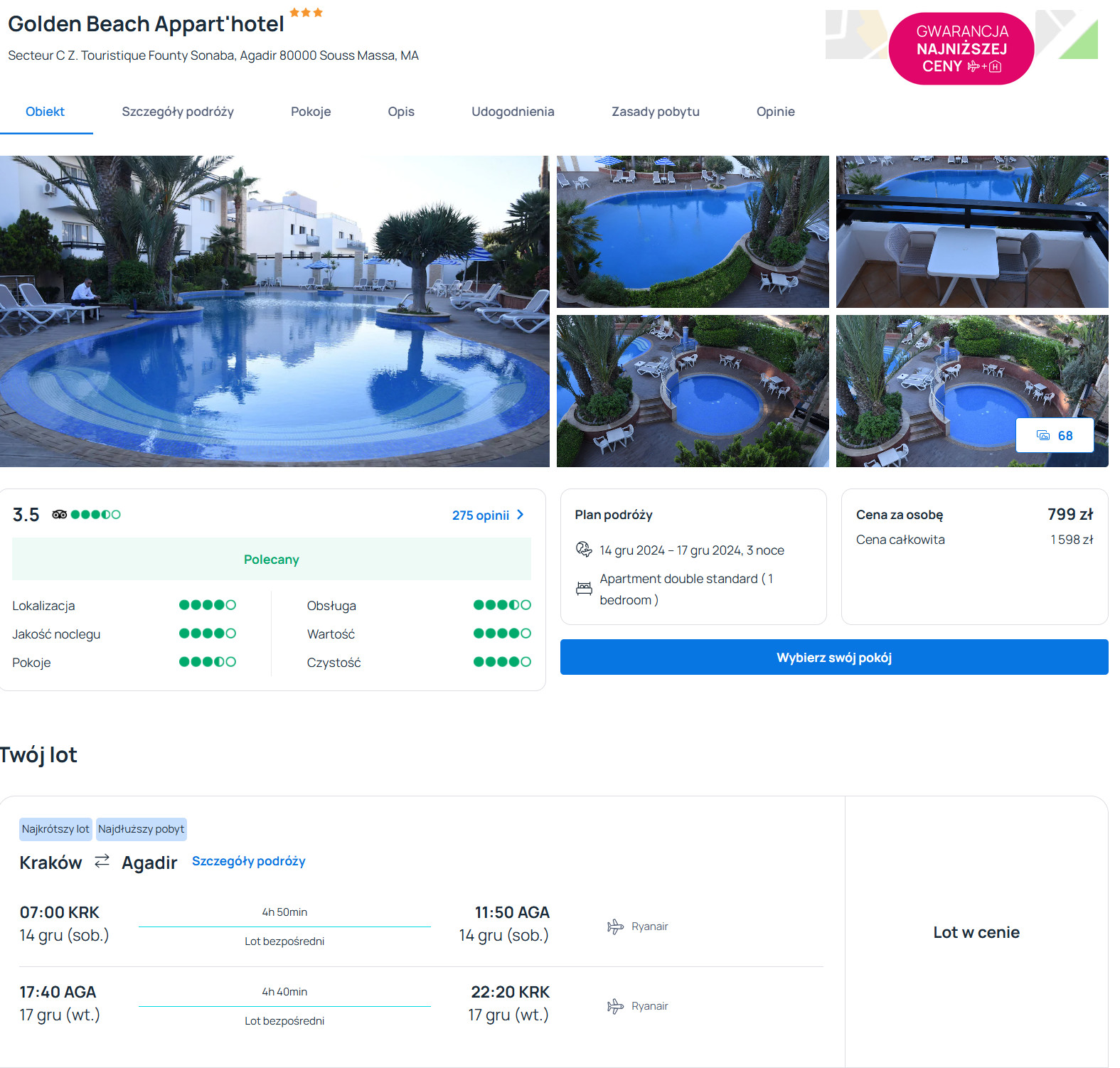 Do Agadiru udasz się z krakowskiego lotniska w Balicach w terminie 14-17 grudnia (sobota-wtorek). W obie strony polecisz bezpośrednio linią Ryanair z bagażem podręcznym.