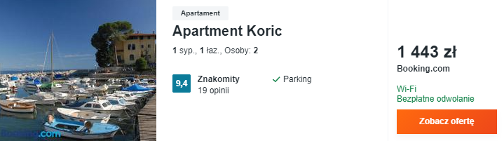 Wybrałem dla was noclegi w Apartment Koric. Czeka tam na was przestronny apartament wyposażony we wszystkie udogodnienia niezbędne do krótkiego wypoczynku: klimatyzację, aneks kuchenny, prywatną łazienkę oraz dostęp do WiFi.