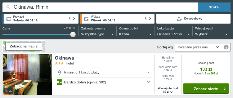 Przeloty realizowane są na pokładzie linii lotniczej Ryanair. Nowoczesny designerski hotel Okinawa położony jest w spokojnej dzielnicy Miramare w Rimini, zaledwie 100 metrów od pobliskiej plaży. Wszystkie pokoje są klimatyzowane i wyposażone w minibar oraz prywatną łazienkę. W cenie zawarte jest codzienne śniadanie. Za 3 noce przy pobycie 2 osób zapłacicie 288 PLN. Wybierzcie pośrednika Trip.com.