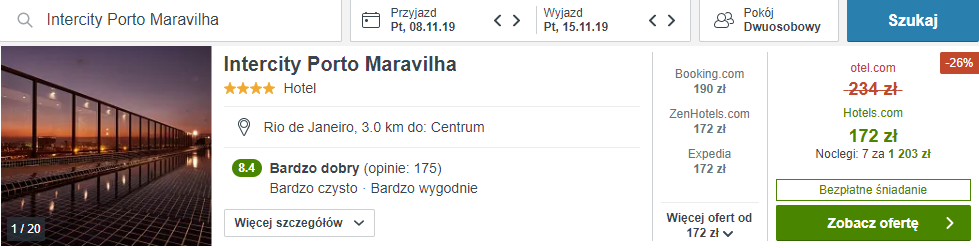 W Rio de Janeiro wybrałem dla Was zakwaterowanie w 4* hotelu Intercity Porto Maravilha. Oferuje on swoim gościom wygodne, klimatyzowane pokoje z widokiem na morze. Wyposażone są one w duże łóżka, prywatną łazienkę oraz bezpłatne WiFi. Na miejscu znajduje się również odkryty basen oraz taras z widokiem na zatokę.
