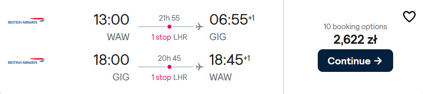 Do Rio de Janeiro polecisz z Warszawy linią British Airways z przesiadkami w Londynie. W cenie zabrać możesz bagaż podręczny oraz przedmiot osobisty.