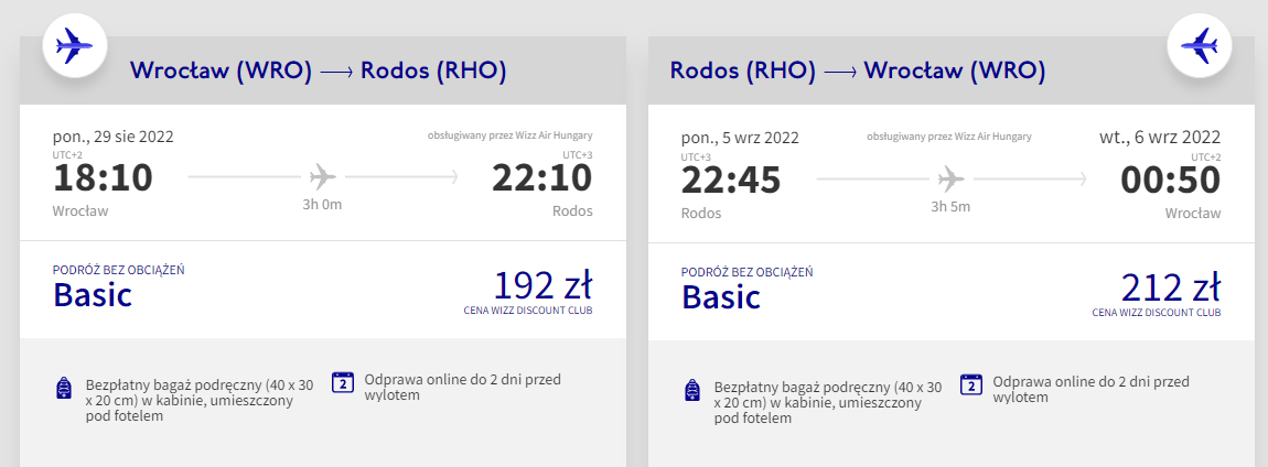 Na Rodos polecicie na zakończenie wakacji, w terminie 29 sierpnia – 5 września. Czeka was bezpośredni lot z Wrocławia, realizowany na pokładzie samolotu linii Wizz Air. Bilety w najniższej cenie zakupią posiadacze Wizz Discount Club, pozostałe osoby zapłacą nieco więcej.