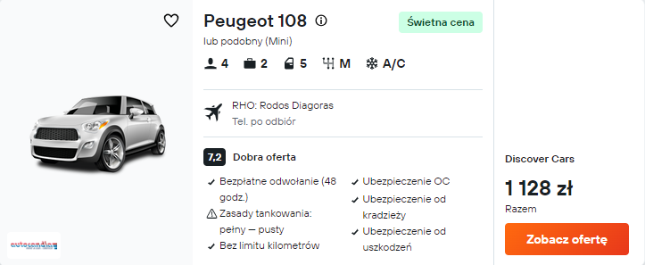 Samochód od 1128 PLN/pobyt
