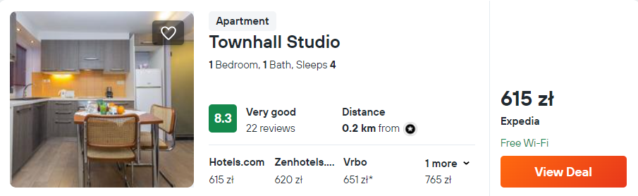 Dwie noce przed rejsem proponuję ci spędzić w apartamencie Townhall Studio, który znajduje się w centrum miasta Corfu. Odległość od portu, jak i od lotniska wynosi nieco ponad 3 km. Stuido składa się z aneksu kuchennego, łazienki, sypialni oraz salonu z rozkładaną sofą. Na miejscu będziesz mieć zapewniony dostęp do sieci WiFi.