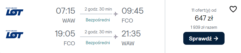 Na początek czeka cię lot z warszawskiego lotniska im. Fryderyka Chopina do Rzymu (lotnisko Fiumicino). W obie strony podróżować będziesz PLL LOT z bagażem podręcznym oraz przedmiotem osobistym.