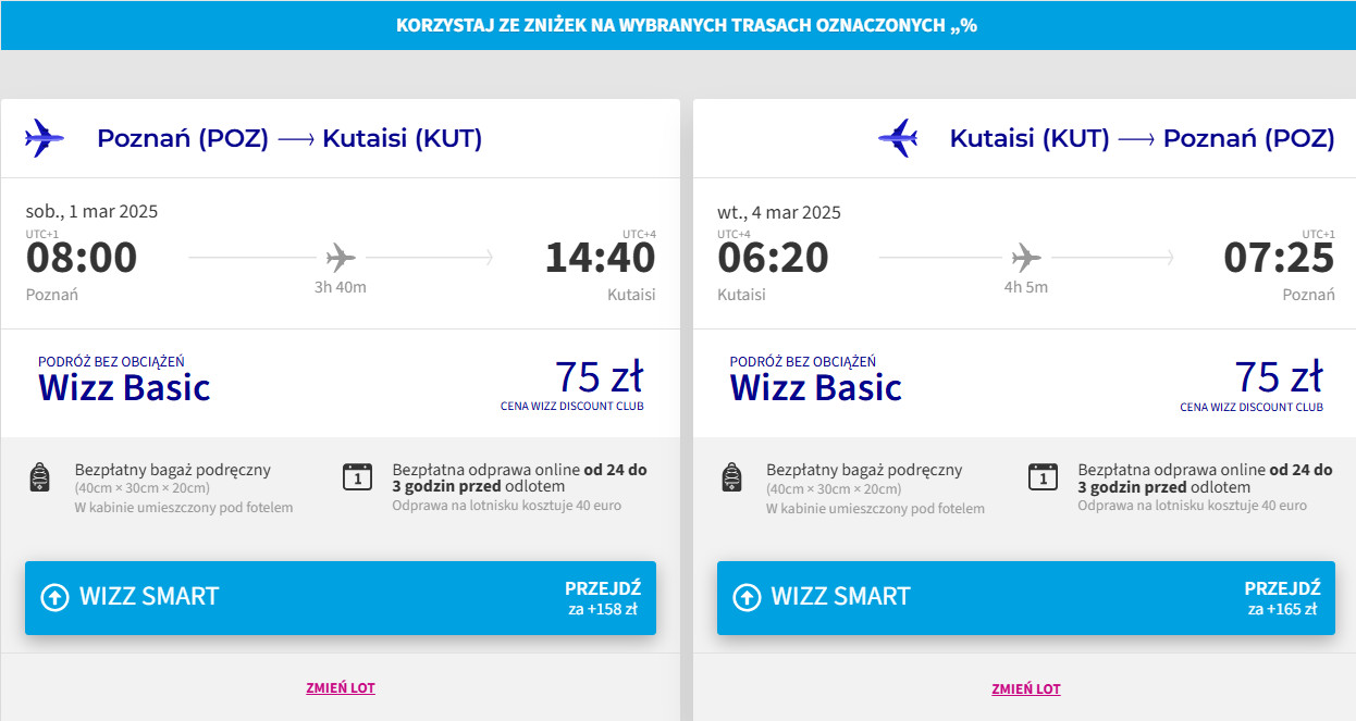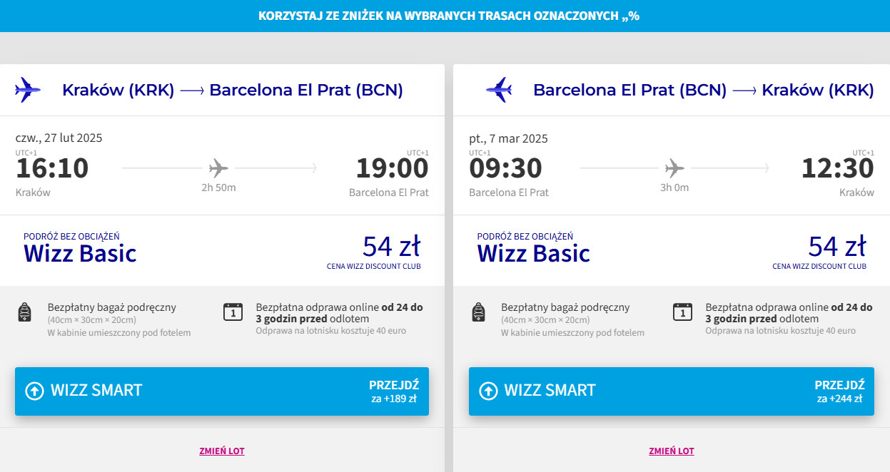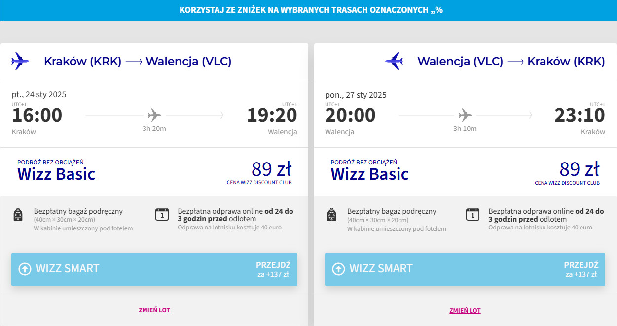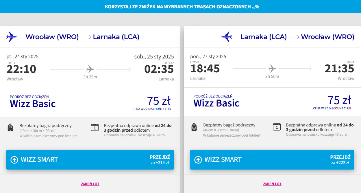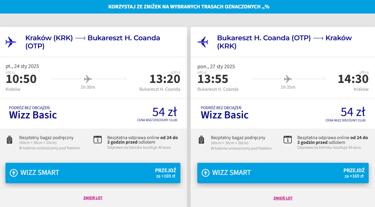 Na każdej trasie polecisz bezpośrednio linią Wizz Air z bagażem podręcznym. Bilety w najniższej cenie dostępne są dla członków Wizz Discount Club.
