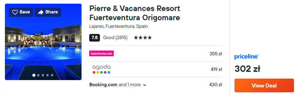 Na Fuerteventurze zatrzymaj się w 4* hotelu Pierre & Vacances Resort Fuerteventura Origomare, który znajduje się w miejscowości Lajares. Na terenie obiektu mieści się park wodny Craterpark.