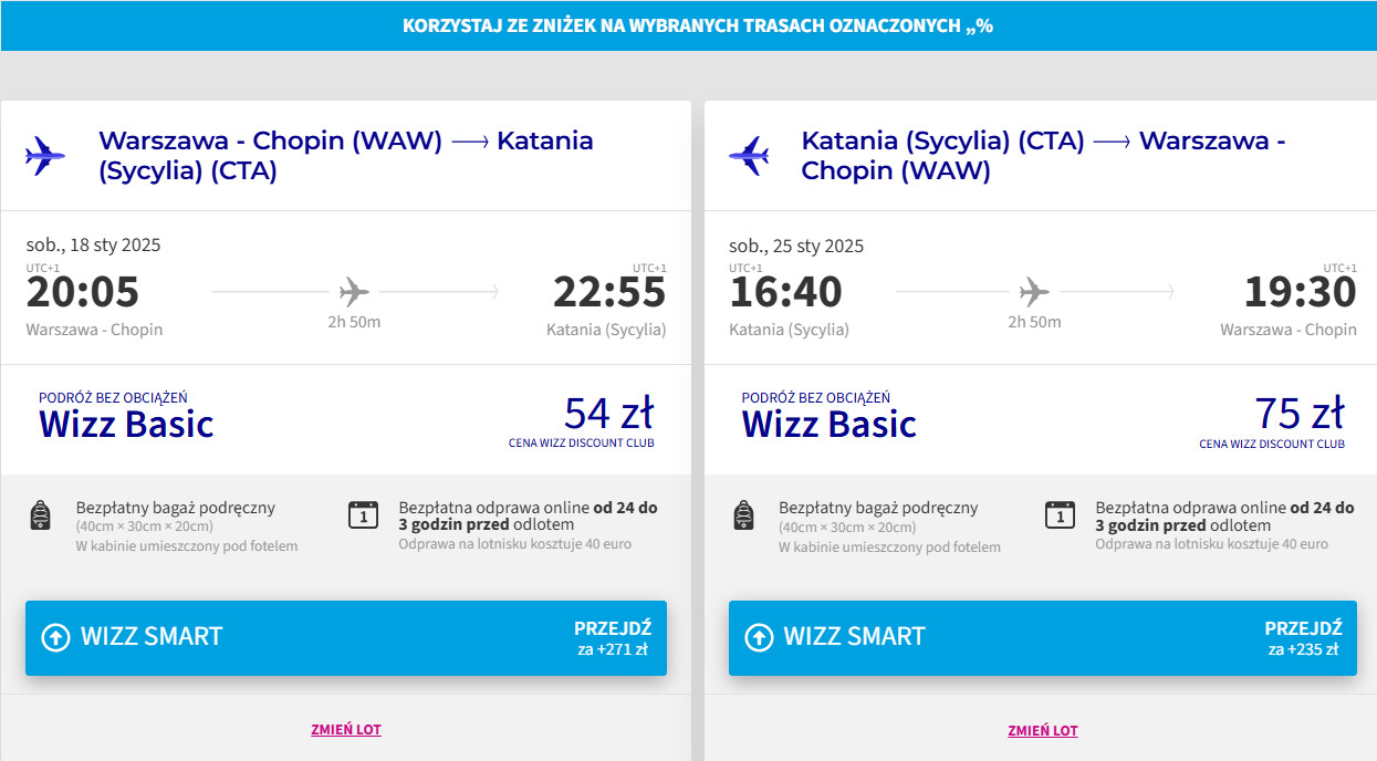 Warszawa – Katania – Warszawa »