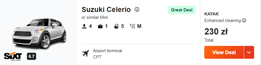 Na Przylądek Dobrej Nadziei, Boulders Beach, Signal Hill i wiele innych miejsc, najwygodniej będzie dojechać własnym autem. Dlatego zachęcam was do wypożyczenia samochodu zaraz po przylocie do Kapsztadu. Ceny wynajmu zaczynają się już od 77 PLN/doba.