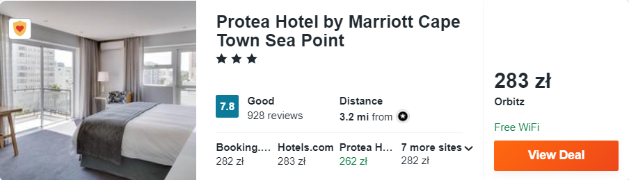W Kapsztadzie proponuję wam noclegi w 3* Protea Hotel by Marriott Cape Town Sea Point, który znajduje się w odległości zaledwie 150 metrów od promenady Sea Point, plaży i oceanu. Wszystkie hotelowe pokoje zostały wyposażone w klimatyzację, telewizor LCD oraz zestaw do parzenia kawy lub herbaty.