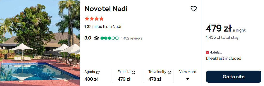 Na Fidżi rozważ pobyt (ze śniadaniami) w 4* hotelu Novotel Nadi, z odkrytym basenem.