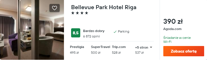 Zatrzymaj się w bardzo dobrze ocenianym 4* Bellevue Park Hotel Riga. Będzie to korzystna baza wypadowa w trakcie weekendowej wycieczki oraz świetne miejsce na wypoczynek. Na dobry początek dnia otrzymasz śniadanie wliczone w cenę zakwaterowania.