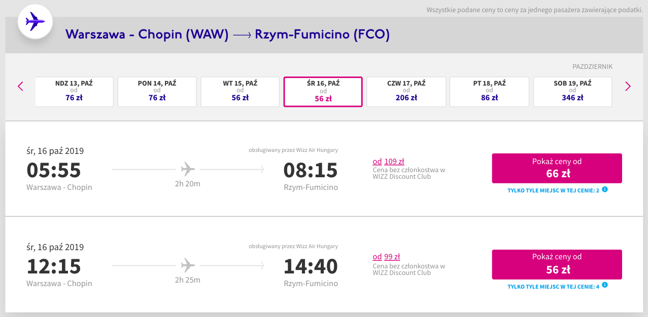 Do Włoch wybierzecie się linią lotniczą Wizz Air z bagażem podręcznym. Sprawdźcie nasze wskazówki, jak się spakować. Z Warszawy do Neapolu polecicie 16 października za 56 PLN, do stolicy wrócicie z Neapolu 21 października za 53 PLN. Trasę miedzy miastami pokonacie Flixbusem za 38 PLN.