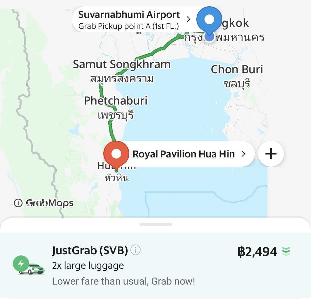 4* hotelu Royal Pavilion Hua Hin od lotniska w Bangkoku oddalony jest o 200 km. Trasę tę wygodnie pokonasz taksówką (Grab) za ok. 2494 THB (ok. 284 PLN).