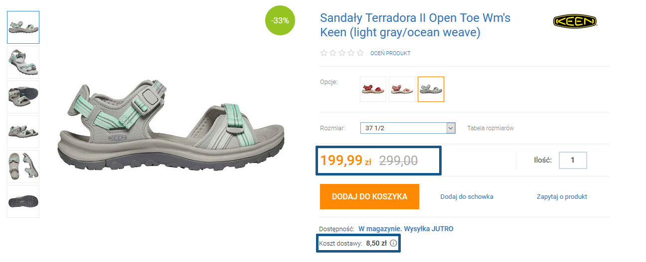 Keen, Merrel, Teva oraz The North Face – chyba żadnemu podróżnikowi nie trzeba przedstawiać tych producentów. Wykonywane przez nich obuwie cechuje świetna jakość, komfort użytkowania oraz ponadczasowy design. Najtańszy model możecie zamówić już za 122,30 PLN, a dostępnych jest kilka opcji, zarówno dla pań jak i panów.