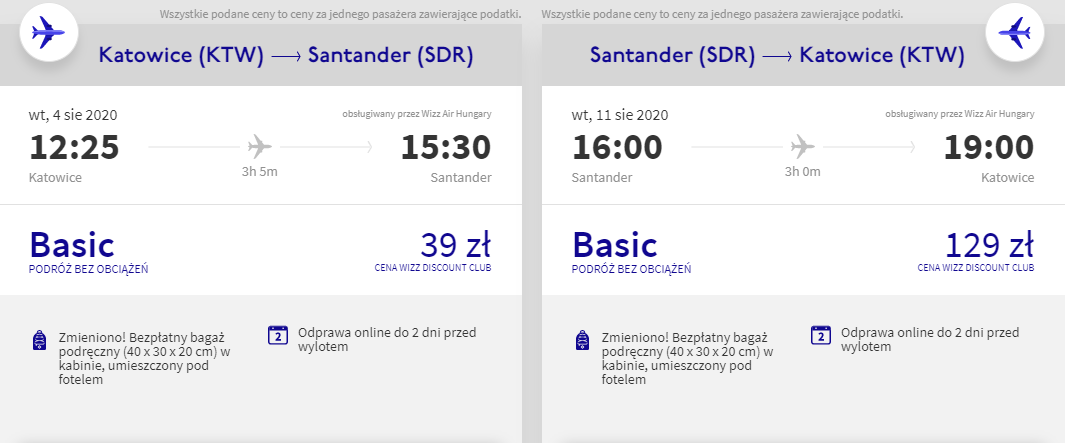 W podróż wybierzecie się w okresie przyszłorocznych wakacji w terminie 4-11 sierpnia. Do Hiszpanii polecicie na pokładach samolotów linii lotniczej Wizz Air. Bez dodatkowych opłat będziecie mogli zabrać ze sobą tylko bagaż podręczny. Przeczytajcie nasze wskazówki jak się w niego spakować.
