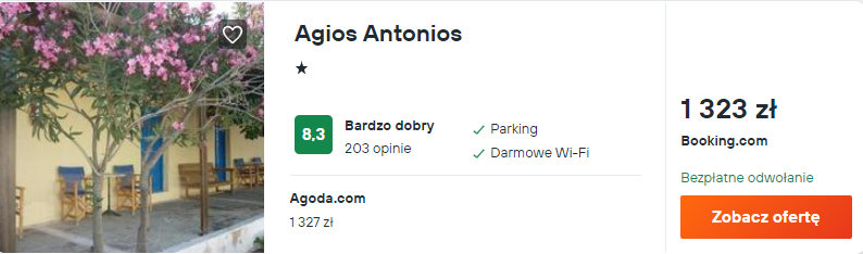 Wybrałem dla was noclegi w bardzo dobrze ocenianym pensjonacie Agios Antonios. Znajduje się on jedynie 300 m od niezwykłej, czarnej piaszczystej plaży w miejscowości Perissa.