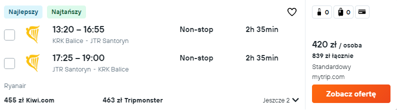 Na wycieczkę do Grecji udacie się w terminie 10 – 17 czerwca. Czeka was bezpośredni lot z Krakowa na Santoryn, realizowany na pokładzie samolotu linii lotniczej Ryanair. Jego rozkładowy czas zaplanowano na około 2,5h.