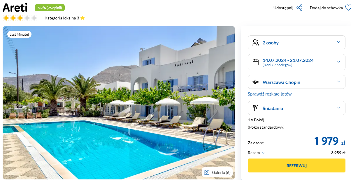 Spędzisz tydzień w 3* hotelu Areti. Obiekt oferuje komfortowe zakwaterowanie w klimatyzowanych pokojach z balkonem, taras słoneczny i basen.